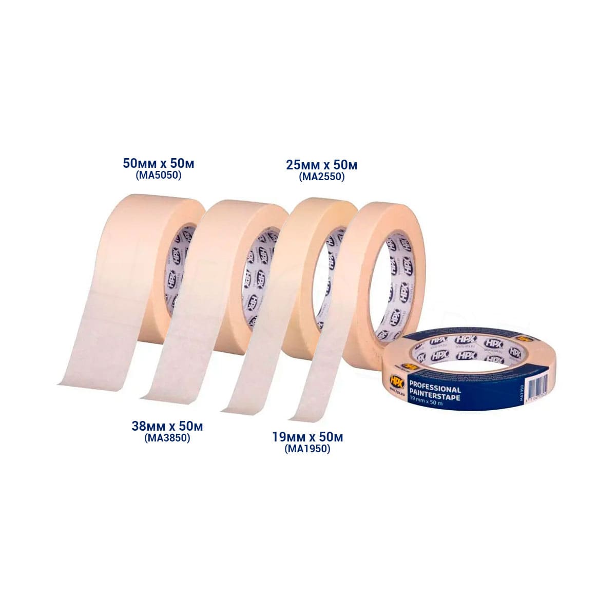 HPX 60°C 25мм х 50м (MA2550) – професійна маскуюча малярська стрічка (скотч) для захисту суміжних з фарбуванням областей та деталей, інших технічних операцій при ремонтних роботах.