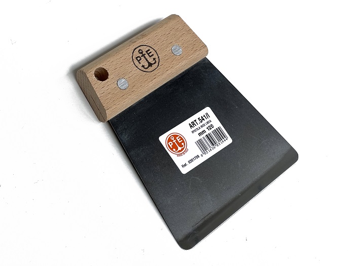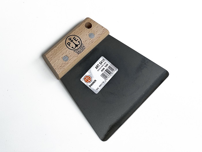 Розгладжуючий шпатель з нержавіючої сталі з дерев'яною ручкою; застосовується для полірування венеціанської штукатурки і інших робіт.